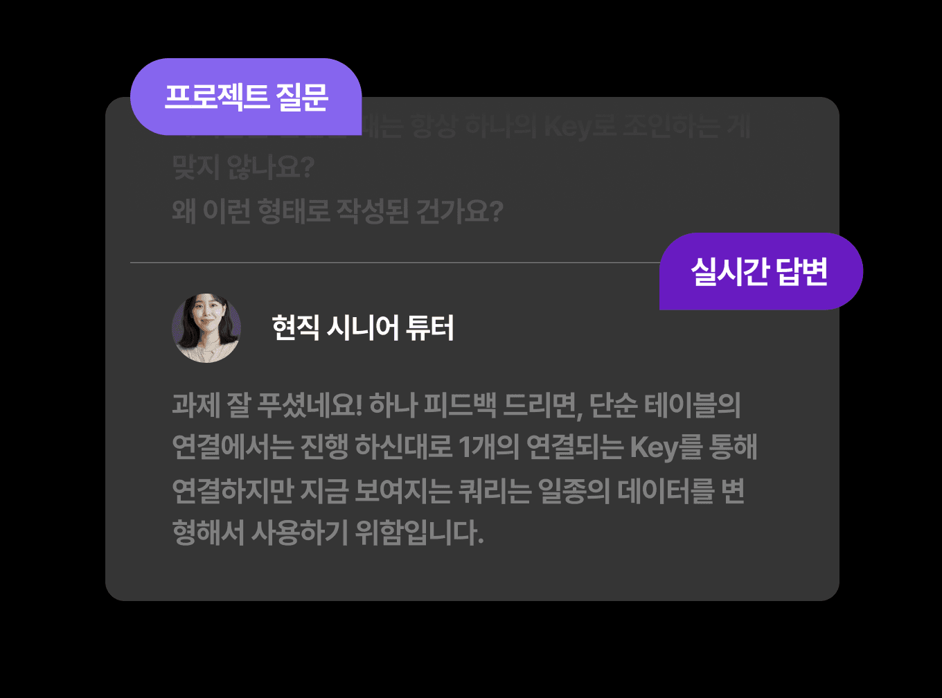 현직 시니어 튜터와 실무 프로젝트를 해결하고, 결과로 증명하는 전문가로 도약하세요.