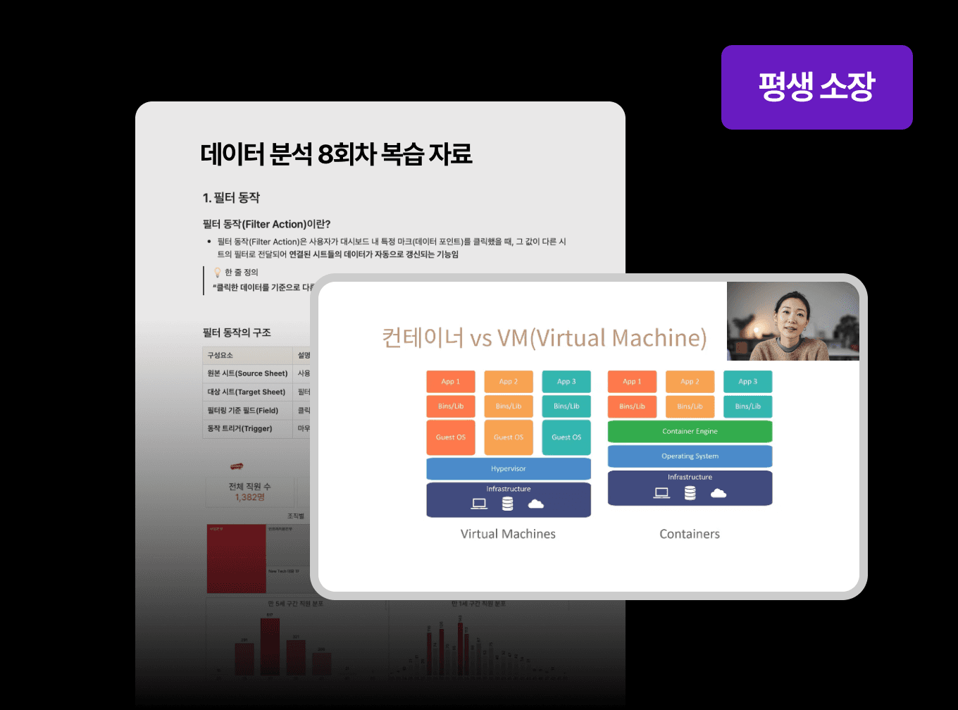 실시간 라이브 세션 녹화본, 복습 세션, 문서 자료를 제공해드립니다.